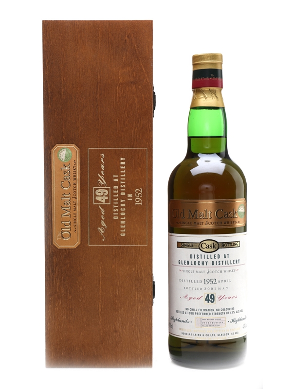A bottle of Glenlochy 49 Year Old from Douglas Laing's Old Malt Cask series. This was distilled in 1952, matured in a single cask, and bottled in May 2001.
