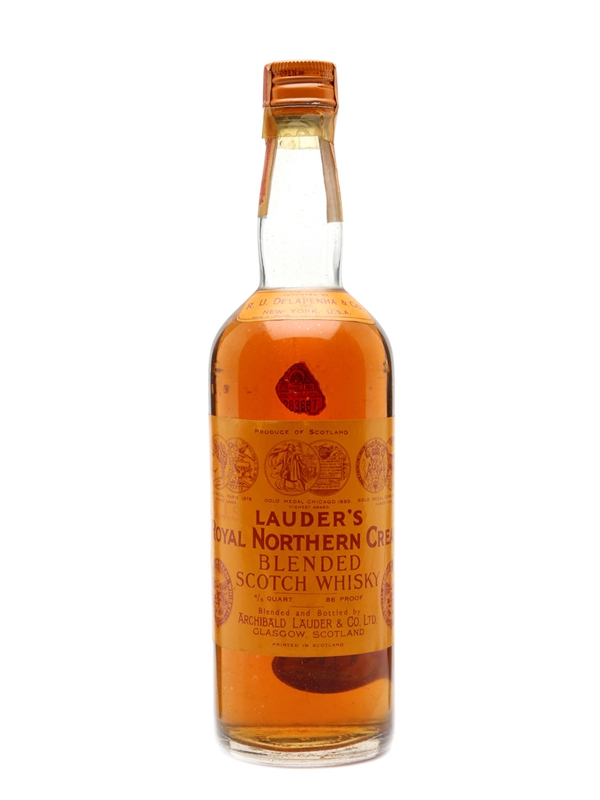 A bottle of Lauder's Royal Northern Cream Blended Scotch whisky. Blended and bottled by Archibald Lauder & Co. Ltd.