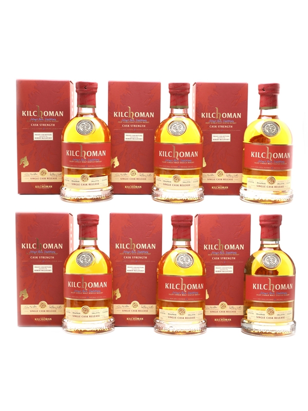 A case of six bottles of Kilchoman 8 year old distilled on 14 June 2006 and bottled on 2 March 2015 from Bourbon cask number 17/2006.