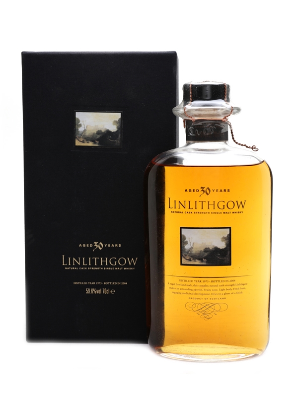 A bottle of 1973 Linlithgow 30 Year Old, bottled at cask strength in 2004 for Diageo's annual Special Releases.