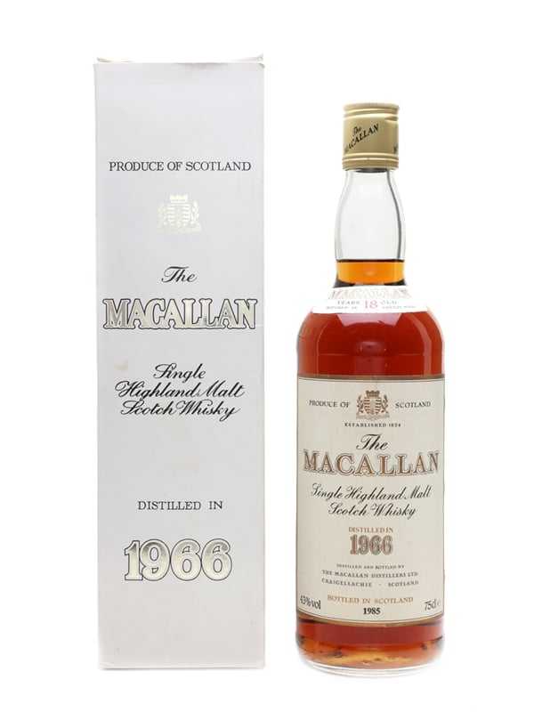 A bottle of The Macallan 18 Year Old, distilled in 1966 and bottled in 1985 for the German market by importer Jumac.