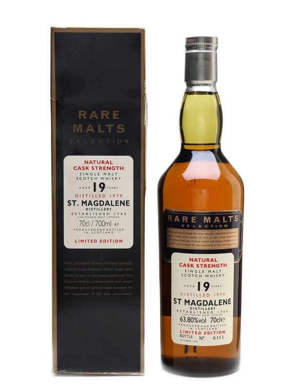 A bottle of St Magdalene 19 Year Old distilled in 1979. This was released in 1998 as part of Diageo's now discontinued Rare Malts range.