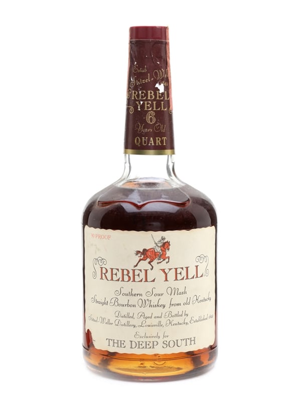 A one quart bottle of Rebel Yell 6 year old Kentucky straight bourbon whiskey.
