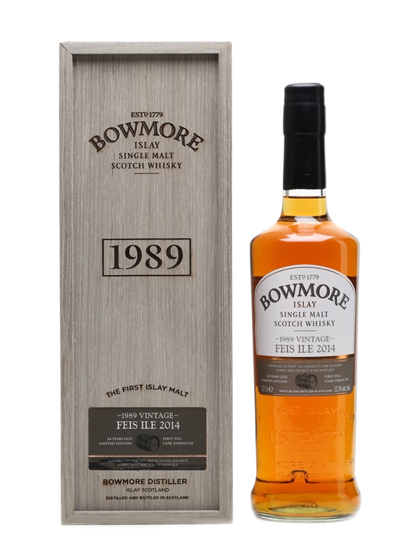 This 24-year-old limited-edition Bowmore is a combination of two casks from 1989: a first fill French oak wine barrique and a first fill American bourbon barrel. It was released to commemorate the 2014 Islay festival.