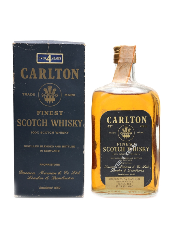 A bottle of Carlton 4 Year Old blended Scotch whisky, distilled, blended and bottled by Davison, Newman & Co. This was imported to Italy by Gianluigi Vismara, we estimate in the 1970s.