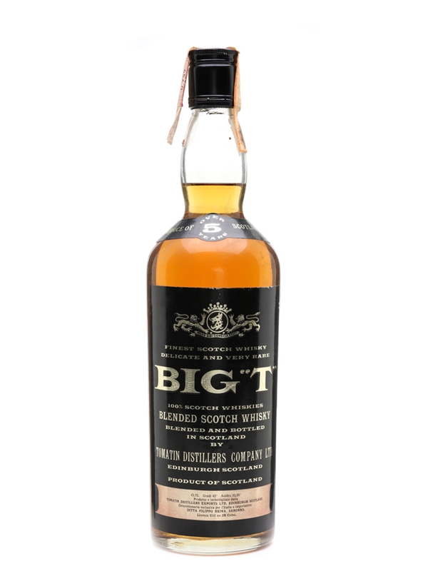 A bottle of Big 'T' from Tomatin Distilleries, produced for the Italian market, imported by Ditta Filippo Reina, we estimate in 1970s.