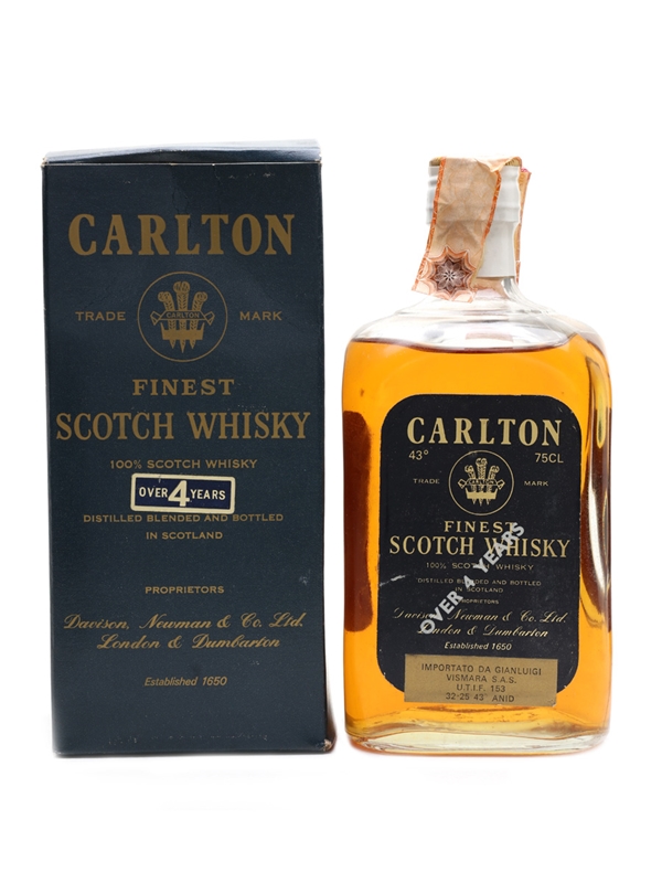 A bottle of Carlton 4 Year Old Finest Scotch Whisky from Davison Newman & Co. This was imported to Italy by Gianluigi Vismara, we estimate in 1970s.