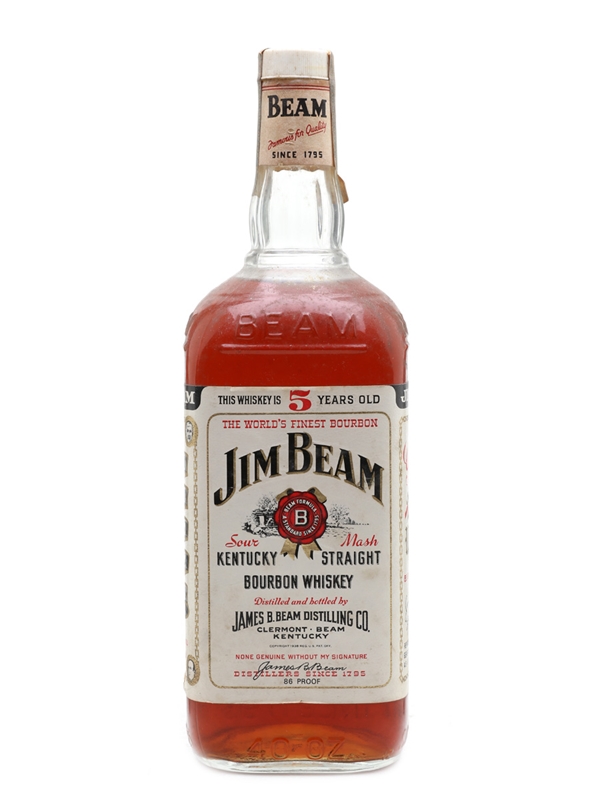 A 118cl bottle of Jim Beam 5 Year Old Kentucky straight bourbon. This was bottled in bond for export, we estimate in the 1970s.