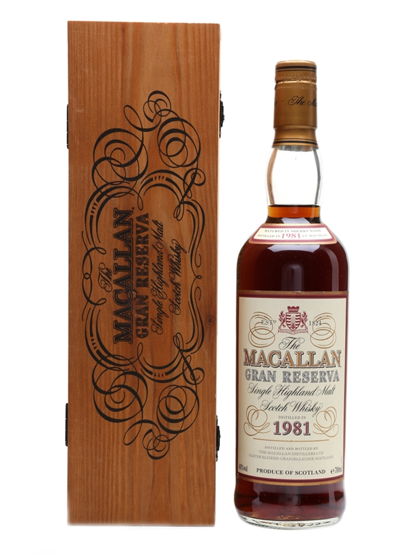 A bottle of The Macallan Gran Reserva. This was distilled in 1981, and matured in sherry casks.