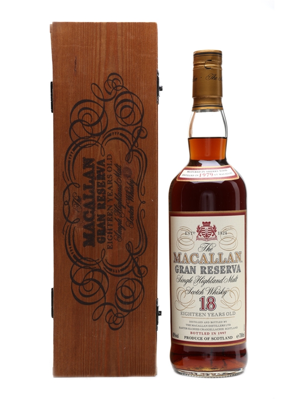 A bottle of The Macallan Gran Reserva 18 Year Old. This was distilled in 1979, matured in sherry casks, and bottled in 1997.