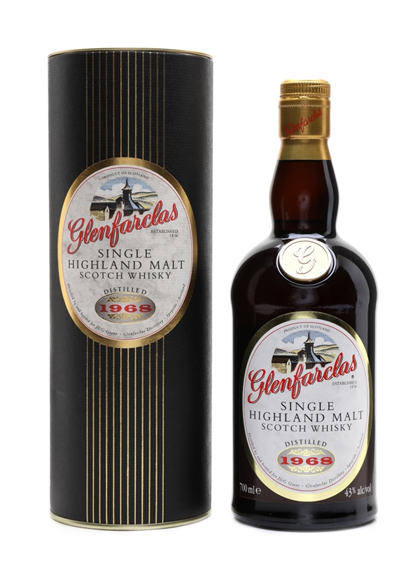 A bottle of Glenfarclas 1968. This was distilled on 17 January 1968 and bottled on 28 July 2000.