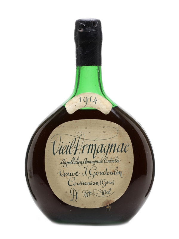 A bottle of Veuve J Goudoulin Vieil Armagnac from a historic vintage, 1914.