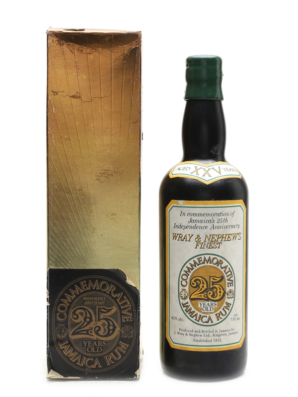 A bottle of Wray & Nephew 25 year old, laid down into oak casks in 1962 and bottled to celebrate the 25th anniversary of the independence of Jamaica in 1987.
