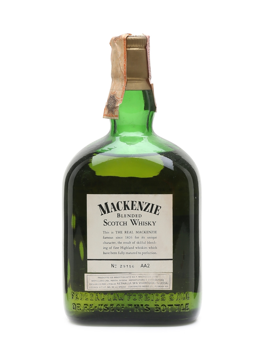 A bottle of The Real Mackenzie 12 Year Old blended Scotch whisky. We estimate this was bottled in the 1980s.