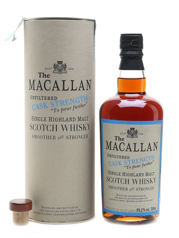 A 50cl bottle of The Macallan Single Malt Scotch Whisky. This was distilled 1989, matured for 14 years in a single oloroso sherry butt and bottled at cask strength on 30 November 2003.