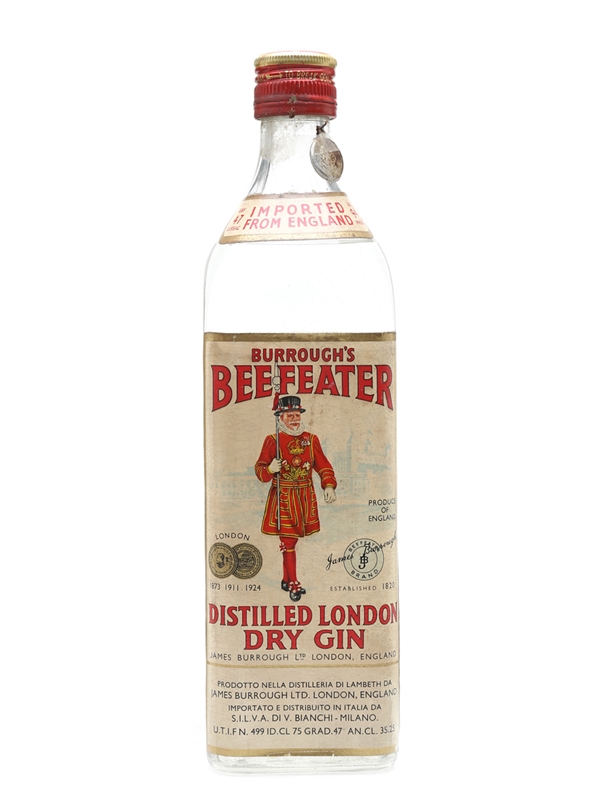 A bottle of Burrough's Beefeater Dry Gin. This was imported to the Italian market by Silva, we estimate in the 1950s.