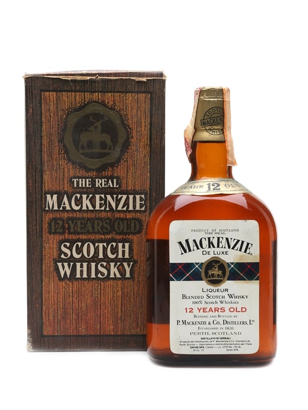 A bottle of The Real Mackenzie 12 Year Old blended Scotch whisky. This was imported to Italy by Savas, we estimate in the 1970s.