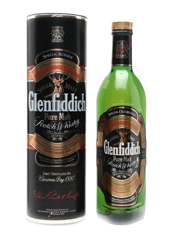 A bottle of Glenfiddich Pure Malt Special Old Reserve. We estimate this was bottled in the 1990s.