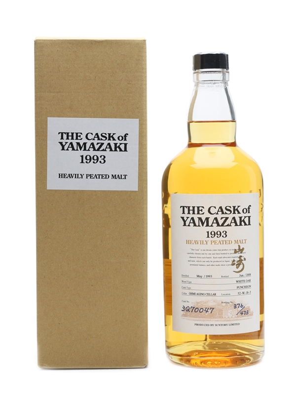 This is rare peated (26ppm) version of Yamazaki, distilled in 1993 and matured in a single American Oak puncheon before being bottled in 2008 at 62% abv.