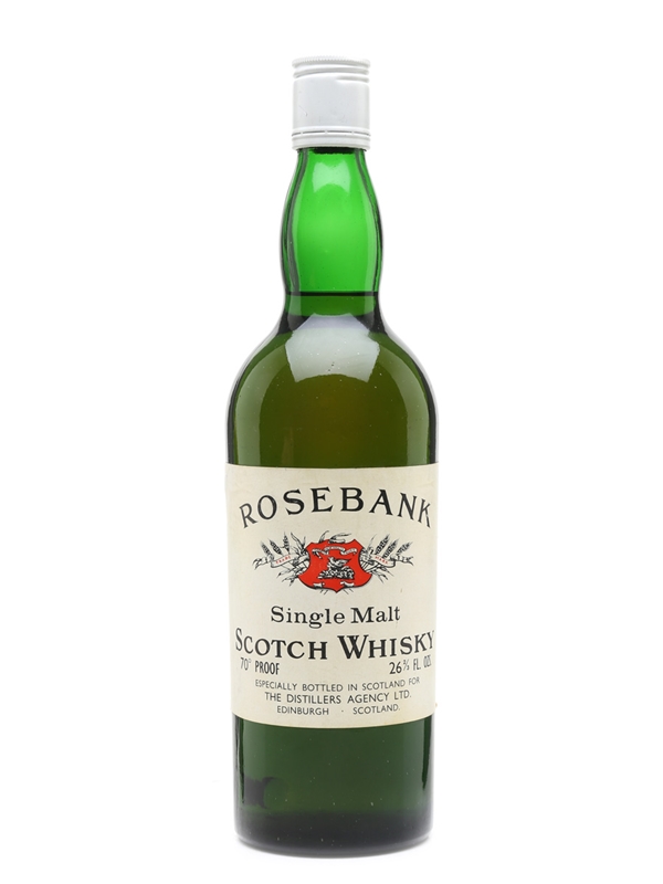 A bottle of Rosebank single malt, specially bottled in Scotland for The Distillers Agency Ltd. We estimate this was bottled in the 1970s.