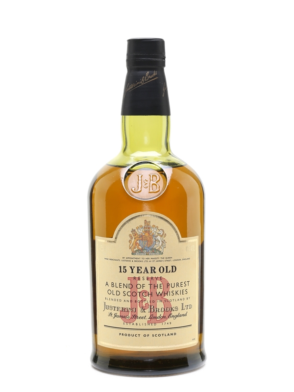 A bottle of J&B Reserve 15 Year Old blended Scotch whisky. We estimate this was bottled in the 1980s.