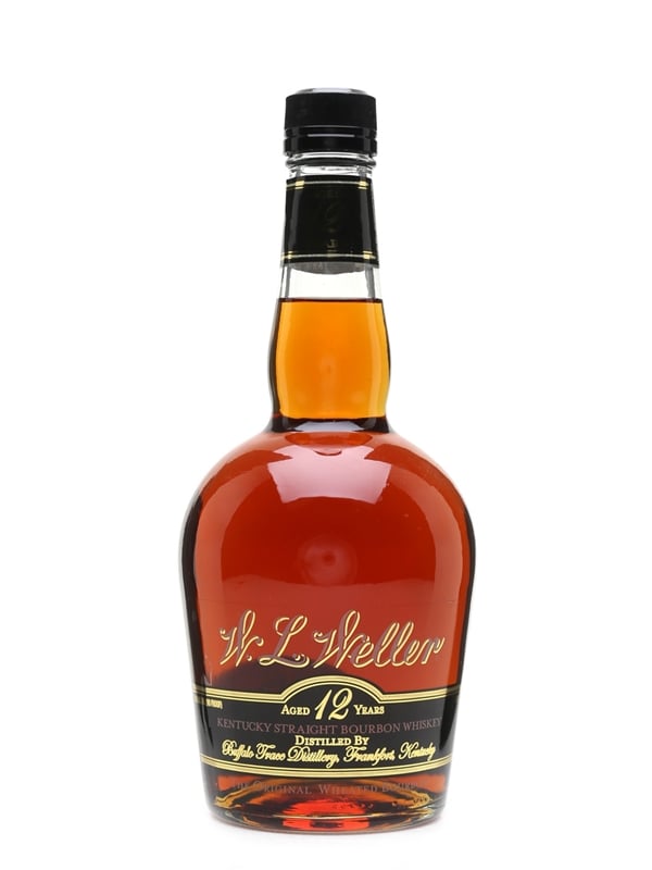 A bottle of W L Weller 12 Year Old Kentucky straight bourbon whiskey, The Original Wheated Bourbon, produced at Buffalo Trace distillery.
