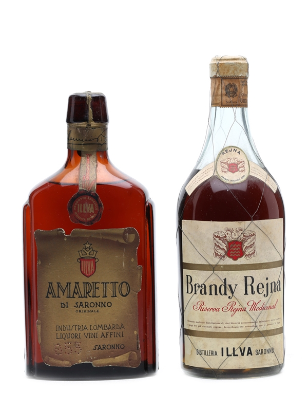 Illva Amaretto Di Saronno & Brandy Rejna Bottled 1950s 2 x 75cl