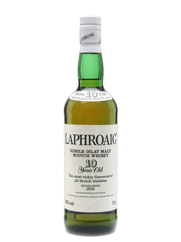 A bottle of Laphroaig 10 Year Old, bottled for the Italian market. We estimate this was bottled in the early 1990s, before the distillery was awarded the Royal Warrant.