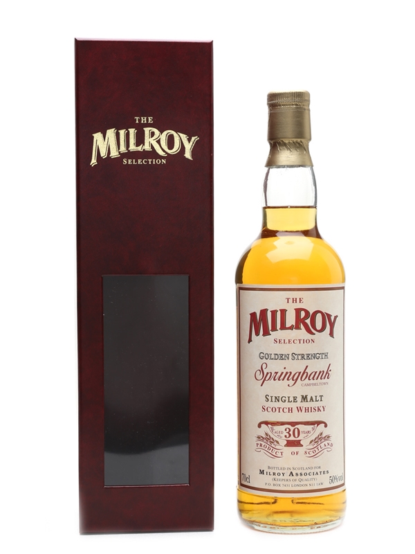 A bottle of Springbank 30 Year Old Golden Strength The Milroy Selection bottled for Milroy Associates.