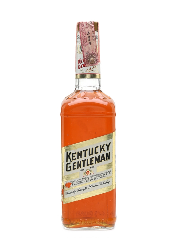 A bottle of Kentucky Gentleman bourbon. This was bottled for the Italian market and imported by Ferrarato, we estimate in the 1980s.