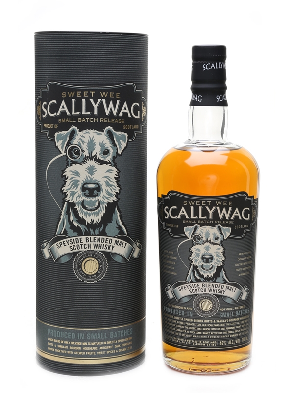 A bottle of Scallywag Speyside Blended Malt. A blend of Speyside malts, including Mortlach, Macallan and Glenrothes aged in a combination of sherry and bourbon casks.