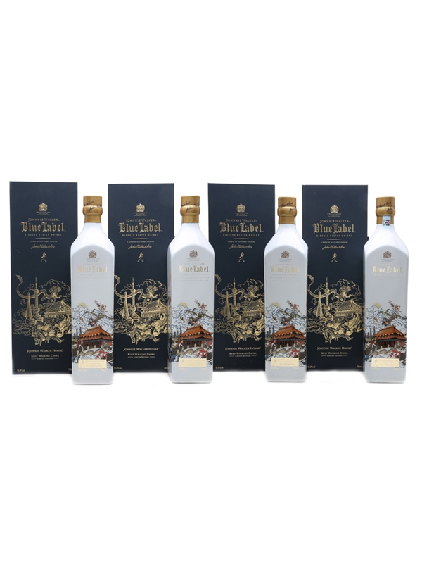 A set of four bottles of Johnnie Walker Blue Label, Keep Walking China. This is one of 888 sets produced to celebrate the Chinese New Year 2017.