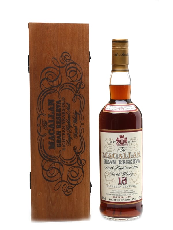 A bottle of The Macallan Gran Reserva 18 Year Old. This was distilled in 1979, matured in sherry casks, and bottled in 1997. This was bottled for the Greek market.