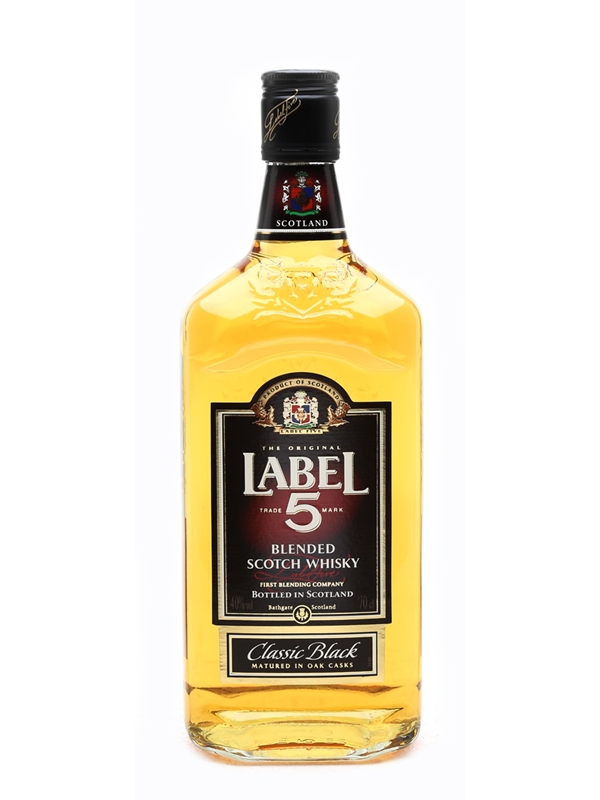 A bottle of Label Five Classic Black blended Scotch whisky. This was bottled for the Italian market.