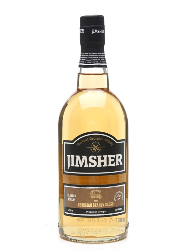 A bottle of Jimsher blended whisky from Georgia, The First Georgian Whisky. This was matured in Georgian brandy casks.