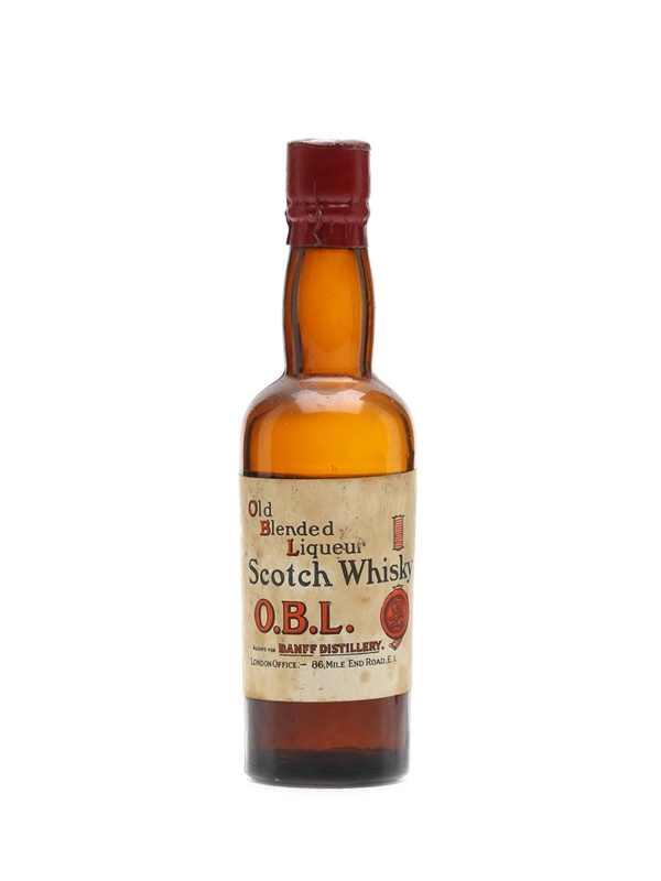 An old miniature of O.B.L. Scotch Whisky liqueur.