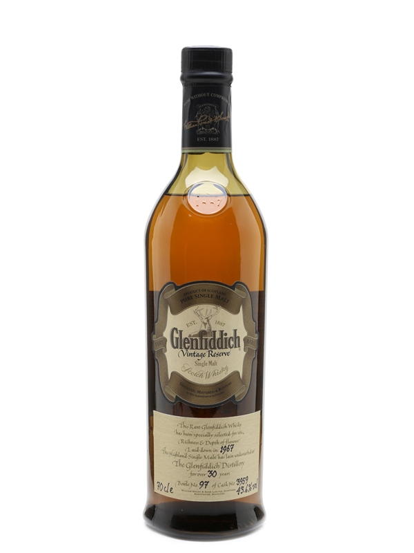 A bottle of Glenfiddich 30 Year Old Vintage Reserve, this was laid down in 1967.