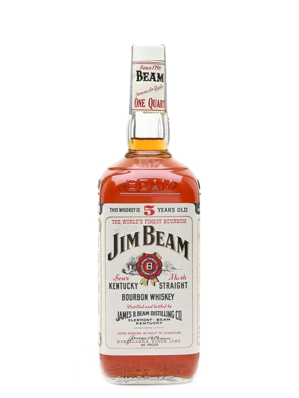 A bottle of Jim Beam White Label 5 Year Old. This was bottled in bond for export, we estimate in the 1970s.