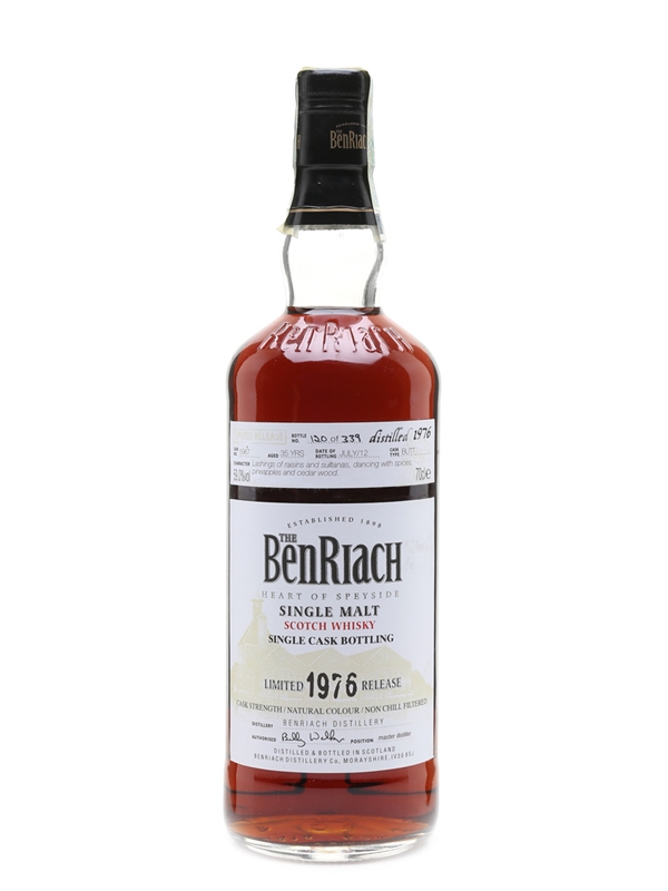 A bottle of The Benriach 35 Year Old. This was distilled in 1976, matured in a single cask and bottled in July 2012.