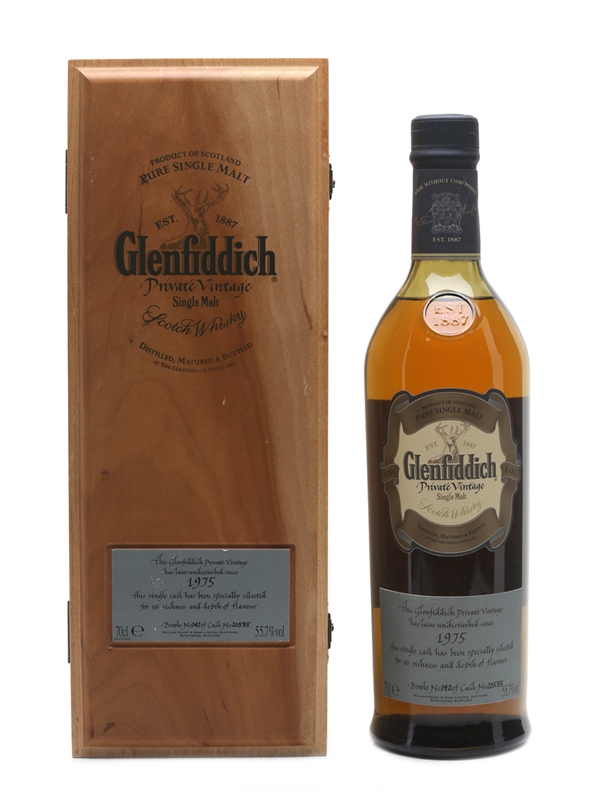 A bottle of Glenfiddich Private Vintage, distilled in 1975.