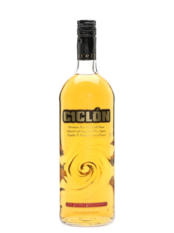 A bottle of Bacardi Ciclón from Bacardi Rum Company. This is made with Bacardi Gold rum infused with imported Blue Agave Tequila, and natural lime flavour.