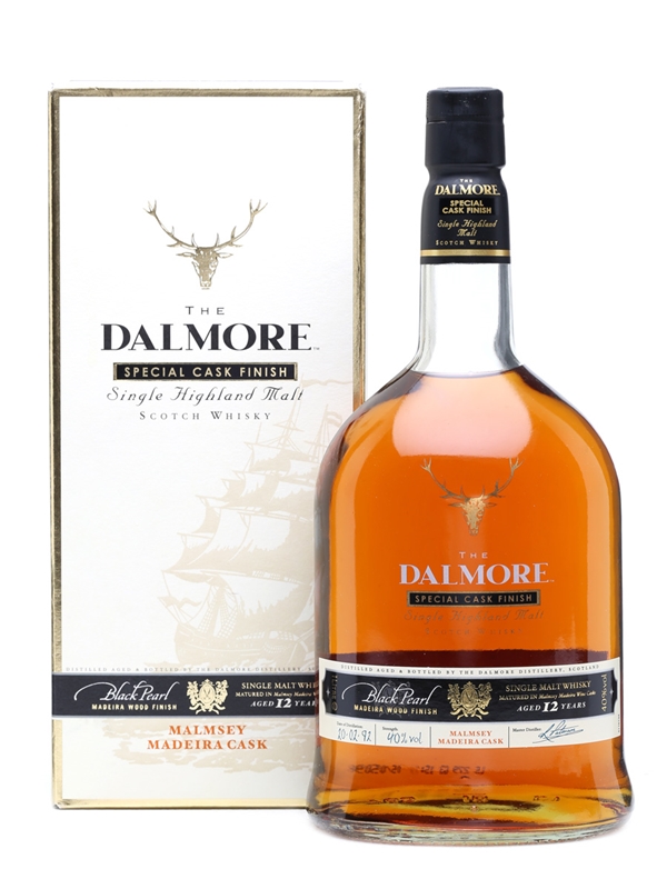 A bottle of 1992 vintage Dalmore 'Black Pearl', finished in Malmsey Madeira casks.