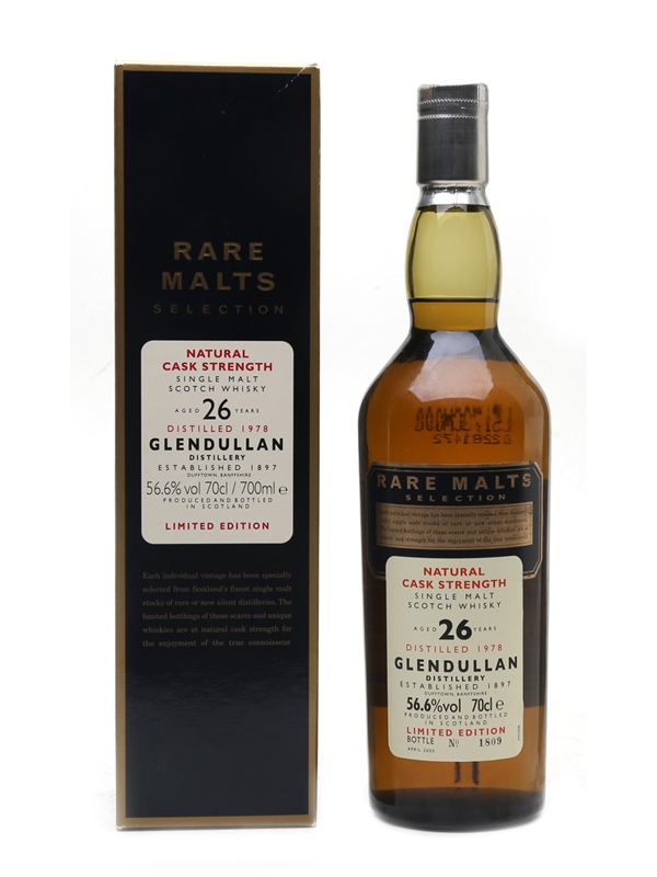 A bottle of Glendullan 23 Year Old, distilled in 1978 and bottled in April 2005 for the Rare Malts Selection.