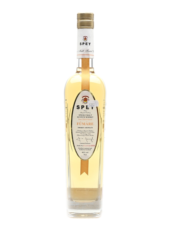 A bottle of Spey Fumare, the first peated whisky from the Speyside Distillery. This is a limited release and was bottled without chill-filtration, and without colour added.