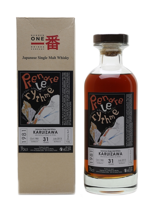 A bottle of Karuizawa 31 Year Old, Prendre le Rythme. This was distilled in October 1981, matured in a single sherry butt, and bottled in July 2013 for French whisky merchant La Maison du Whisky.