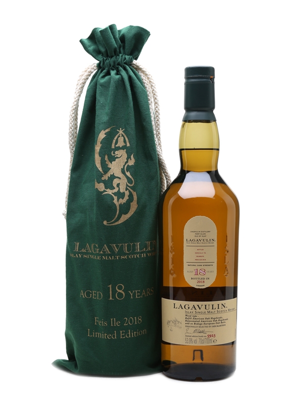 A limited edition bottle of Lagavulin 18 Year Old, released to celebrate Feis Ile 2018. This was matured in refill American hogsheads, rejuvenated American oak hogsheads, and ex Bodega European oak butts personally selected by Ian McArthur.