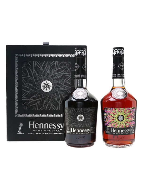 The Hennessy Very Special Deluxe Limited Edition set contains two bottles with special labels designed by New York artist Ryan McGinness. This set was produced to celebrate Hennessy's 250th anniversary in 2015.