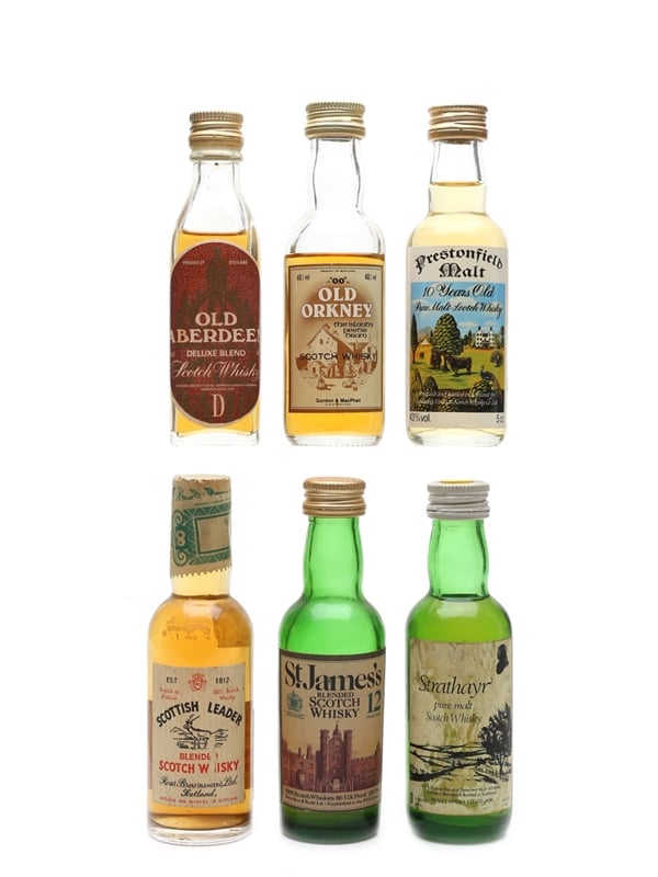 Assorted Blended & Malt Scotch Whisky Bottled 1960s-1980s - Old Aberdeen, Old Orkney, Prestonfield, Berry Bros, Strathayr 6 x 4cl-5cl