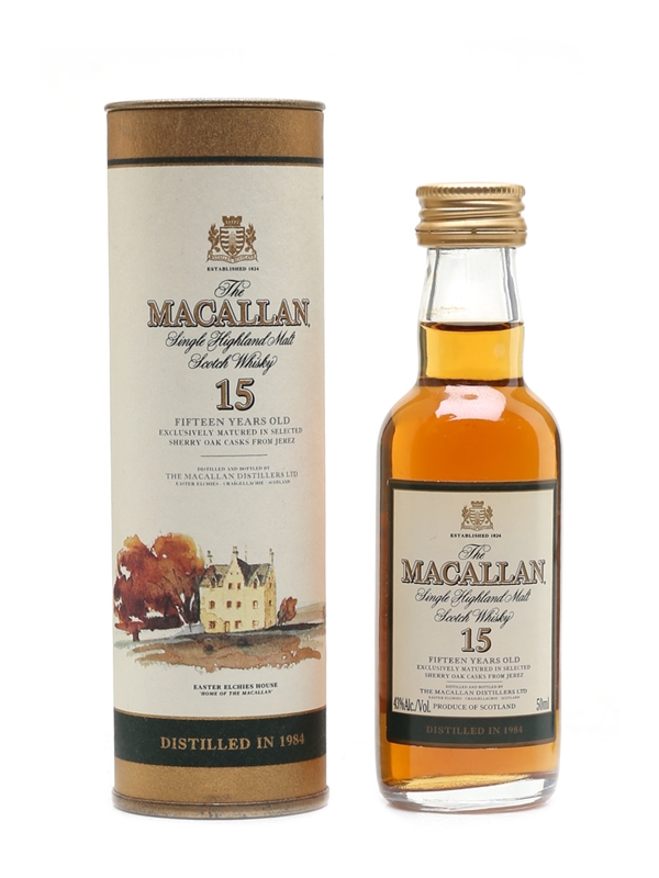 A bottle of The Macallan 15 Year Old, distilled in 1984.