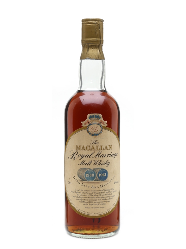 A bottle of The Macallan released in 1981 to commemorate the marriage of Prince Charles and Lady Diana Spencer.